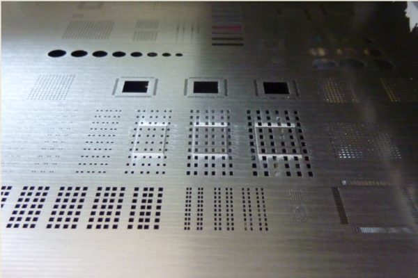 Basically, two materials are being used for creating stencils: stainless steel and nickel. Tom Meeus: “Stainless steel is used the most. A laser cut nickel stencil is more expensive, but it has a better wear resistance. We only advise nickel with larger volumes but for the most part stainless steel will suffice. Recently, we started using an alternative for stainless steel: HR2 steel. HR2 steel is a more advanced kind of stainless steel which ensures a better release of solder paste. This is a good alternative with small and critical components.”