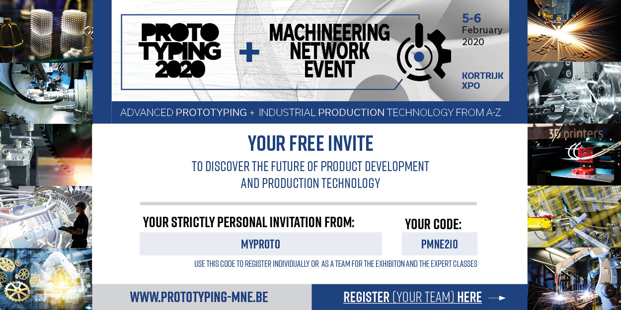 Prototyping Xpo, the networking trade show for designing and prototyping industrial components and products, and MNE (Machineering Network Event) are combining their concepts, strengths and knowledge for the first time at Prototyping + MNE 2020 in Kortrijk Xpo. The two networking trade shows, both specializing in manufacturing technology, welcomed 2,500 and 2,800 visitors respectively during their latest editions.