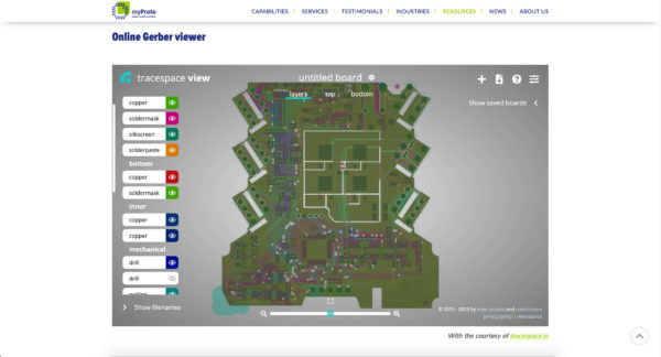 myProto now offers you the possibility to view your Gerber files without having to download any specific program. This is an online gerber viewer that doesn’t store your Gerber file on any server. Just upload your file and get a preview of your PCB! Inspect the individual layers and view your PCB layout everywhere you would like. It doesn’t match a thorough pre production analysis, but it can be used for a fast and handy check or demo. The Online Gerber viewer is an open source project called ‘Tracespace.io’ and was made possible by a community led by Mr. Mike Cousins.